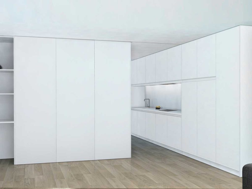 En el diseño interior de estas nuevas particiones y del mobiliario de cocina, se han utilizado paneles laminados e iluminación led integrada.