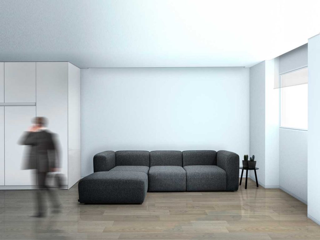 La tipología del edificio es vivienda tradicional entre medianeras, presentando espacios excesivamente compartimentados y desordenados. El cliente pretende conseguir un espacio amplio y bien iluminado, en el que el Diseño interior marque un contraste importante con el resto del edificio. Para ello en el proyecto se contempla el derribo de las particiones interiores de la vivienda y la configuración de un nuevo concepto de espacio tipo loft ,en el que aparece un cuerpo central en el que encontramos el baño y el almacenamiento tanto de salón, cocina y dormitorio.